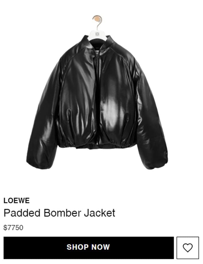 해당 의상은 현재 로에베 공홈에서 만나볼 수 있는 $7,750 짜리 램스킨 자켓! 한화로 10,100,000 원에 판매중이니 관심있으신분들은 찾아가셔도 좋으나 놀랍게도 사람들의 반응과는 달리 현재는 매진된 상태.